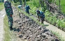 Babinsa Koramil 0201-12/HP Bantu Kepala Desa Kawal Pembangunan Drainase di Hamparan Perak