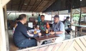 Serma Suranta Ginting memanfaatkan momen tersebut untuk bertemu beberapa warga yang sedang berkumpul di warung. Kehadiran Babinsa disambut hangat, mencerminkan pentingnya kehadiran aparat TNI dalam membangun komunikasi yang baik dengan masyarakat.