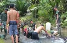 Di sana, personil Satgas melakukan pembenahan ulang kolam penampungan air yang sebelumnya sudah dikerjakan.