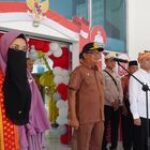 Sekretaris Daerah Kabupaten Langkat, H. Amril, S.Sos, M.AP, menyerahkan duplikat bendera pusaka merah putih kepada Pasukan Pengibar Bendera