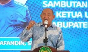 Pj Bupati Langkat Faisal Hasrimy dalam sambutannya sampaikan peran dari dunia usaha Kabupaten Langkat.